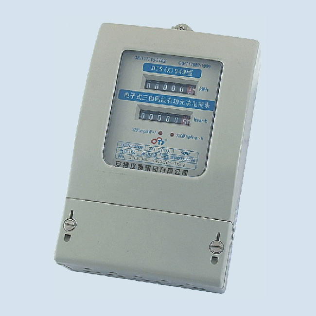 DT(x)s949,DS(x)S949型三相电子式有功无功组合电能表,,,,,接纳专用大规模集成电路以及SMT工艺手艺,,,,,工业级国际着名品牌长寿命元器件,,,,,信息显示接纳5+2位LCD宽温液晶屏显示,,,,,用电信息,,,,,电网参数显示直观,,,,,停电数据不丧失。。。。本产品能准确计量50-60Hz交流电网中的三相有功,,,,,无功电量,,,,,丈量电流,,,,,电压,,,,,功率因数等电网参数,,,,,性能切合国际GB/T17215-2002标准(idt IEC61036国际标准)和GB/T17882-1999标准中的所有手艺要求。。。。本产品主要作用是可以取代二块通俗三相表,,,,,并能丈量电网参数,,,,,拓展RS485通讯功效,,,,,解决供电部分远距离操表的问题,,,,,具有宽负荷,,,,,低耗能,,,,,高精度及抗滋扰性能力强的特点。。。。